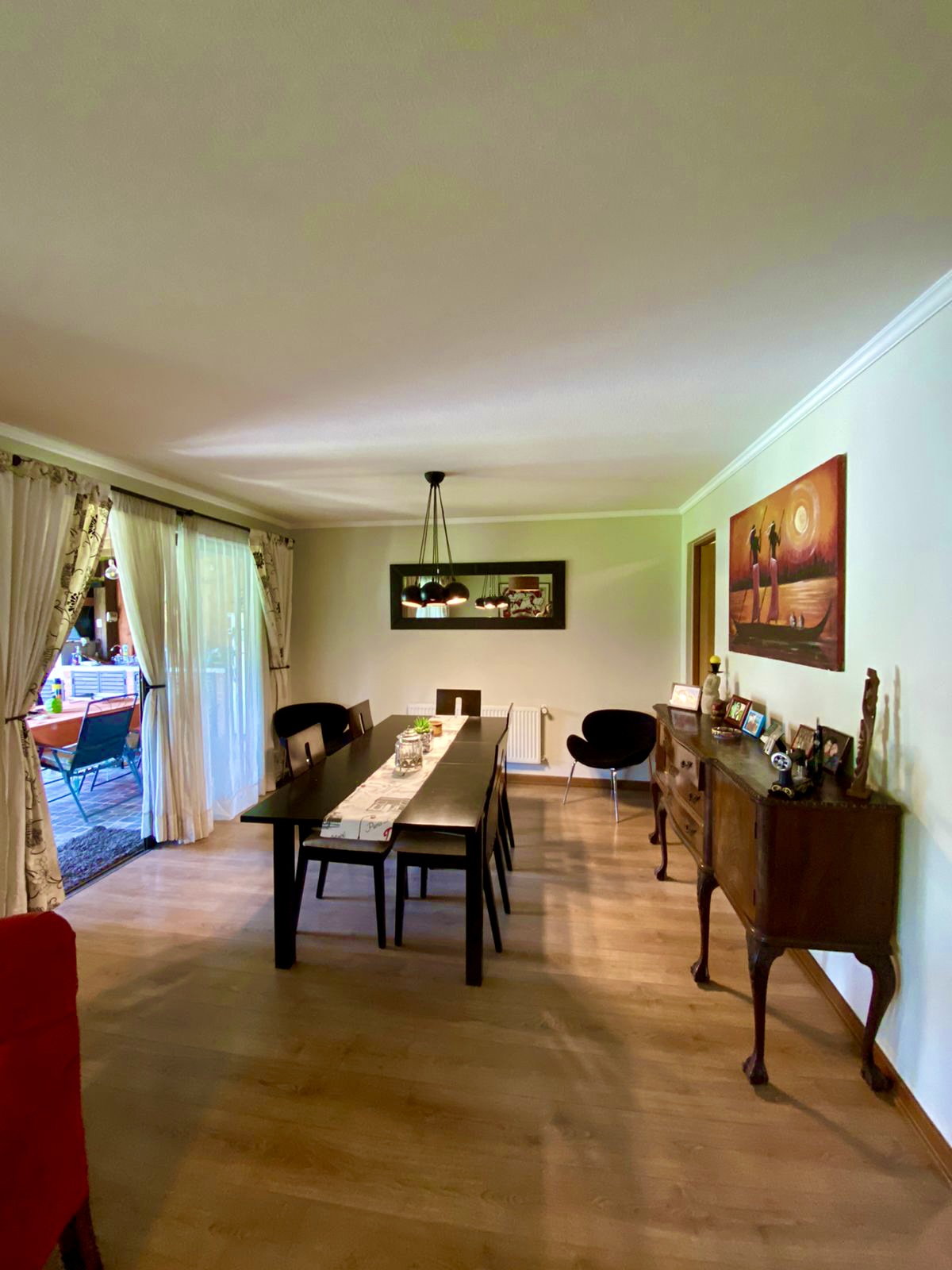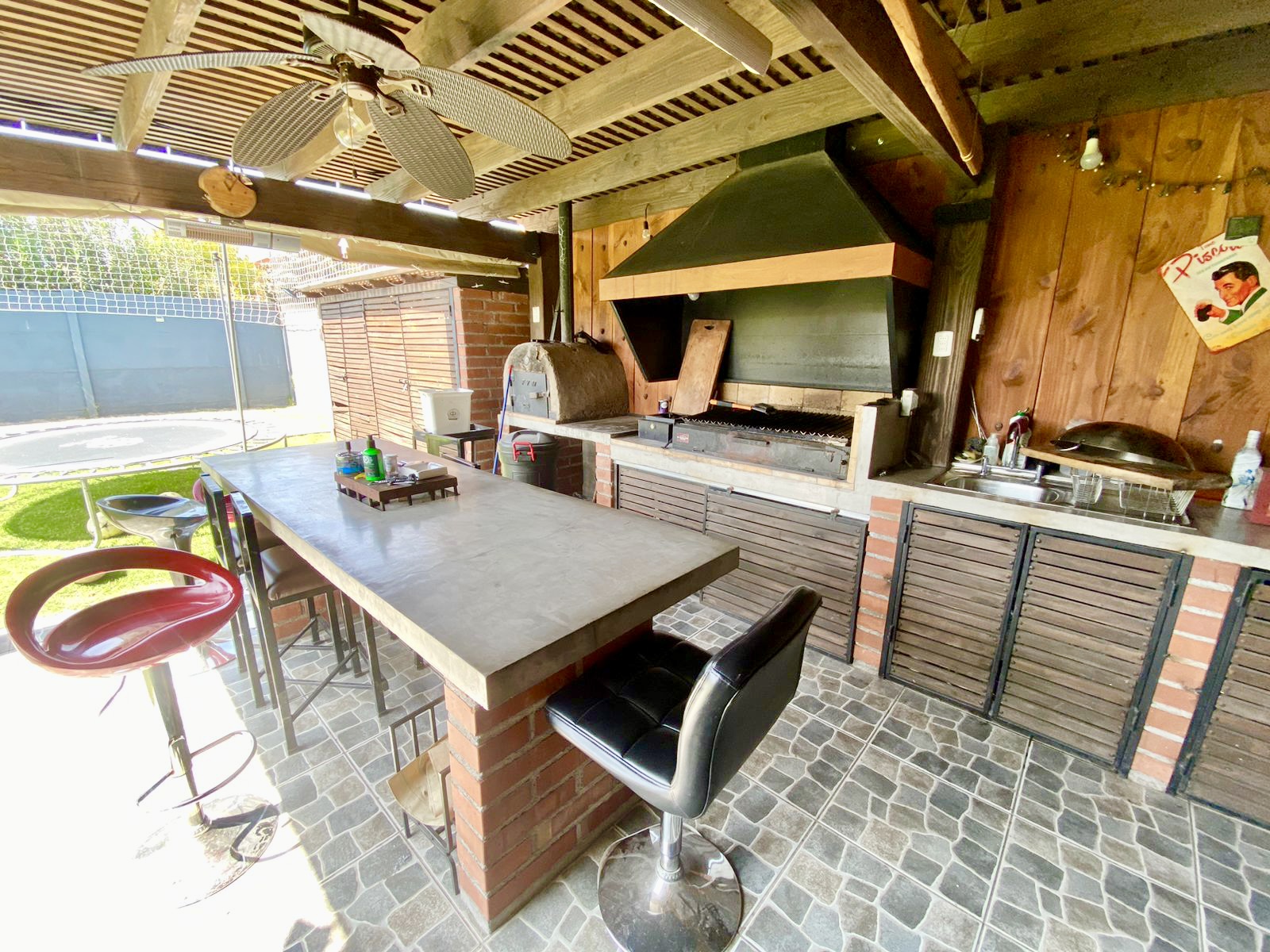 Presenta ampliacion en salida de cocina utilizada como comedor de diario, dormitorio y baño de servicio, patio de servicio y con acceso independiente baño para el quincho.