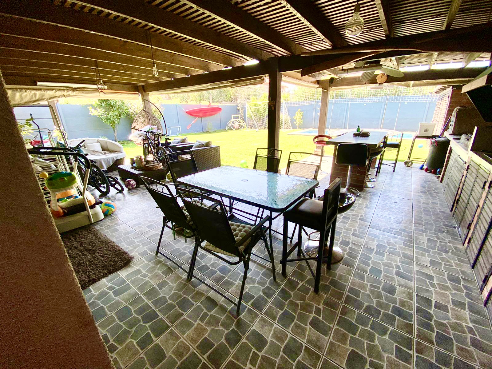 Cuenta con obras complementarias de buen nivel, estacionamiento pavimentado cubierto, terraza cubierta con cortinas y quincho en obra con baño, cercos medianeros, piscina con reja de seguridad removible.
