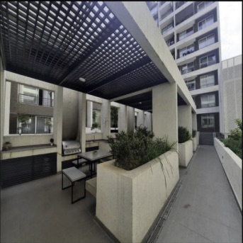 Edificio cuenta con sala multiusos, gimnasio, piscina, estacionamiento de visitas, lavandería y quincho.