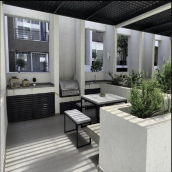 El departamento cuenta con living-comedor con salida a terraza, cocina americana amoblada y equipada con encimera, horno electrico empotrado, campana. Dormitorio principal en suite.